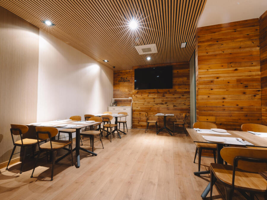 Dependiendo de la configuración de los espacios, el restaurante puede acoger hasta 180 personas en cóctel y 130 personas en banquete.
